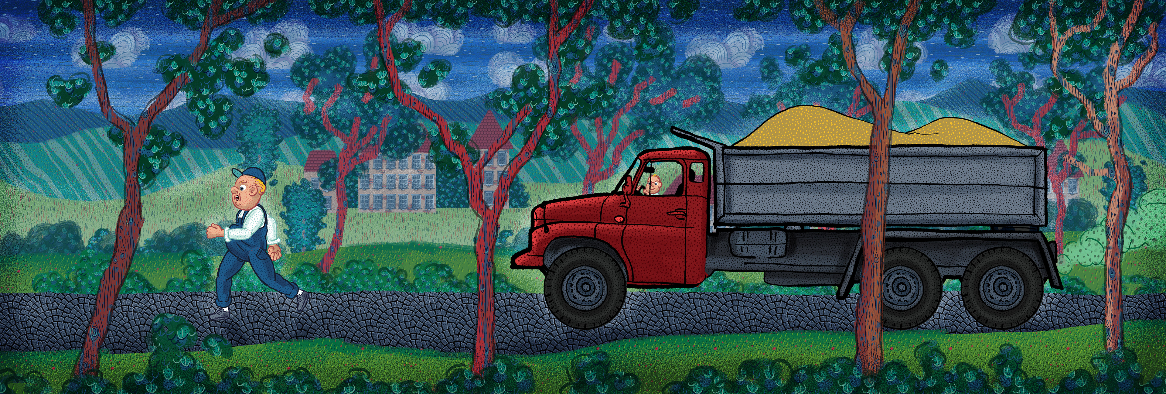 Auta jsem velmi stylizoval, nechtěl jsem žádné značky, ani rozptylující tvary, navíc ty dnešní jsou dost nudné, proto jsem i jako archetyp nákladního auta vzal něco jako starou dobrou Tatrovku. Má super zvuky i velmi charakteristický zjev. Přímarští dostali do rodiny červenou, Pepa pak v práci dostane modrou a na konci přejede ještě zelená. Celý klip se vlastně točí v kruhu, ale chtěl jsem to jednoduché, jako cesty náklaďákem a kamionem, jedeš tam, jedeš zpátky. Jedeš pořád dokola. Jako v životě. Přesto je to pro Pepu a jeho rodinu zábava, protože to chtěl přeci vždycky dělat. Tak mu to přejme.